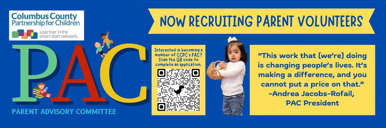 Parents of children ages birth to 5 and community stakeholders in Columbus County are welcome to apply to join the PAC. PAC seeks to have representation from all across the county -- not just Whiteville.